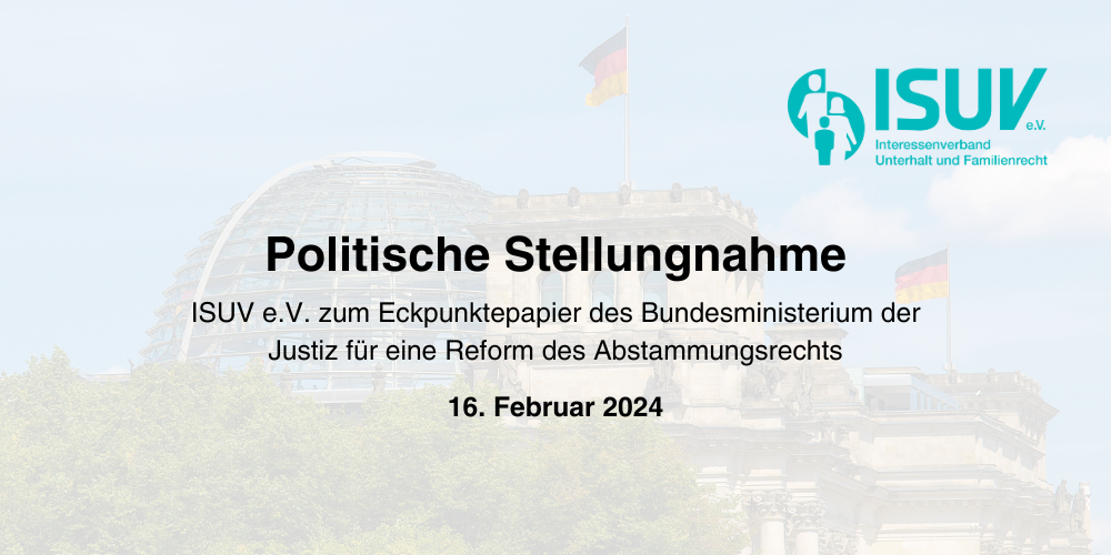 Die Beziehungsstrukturen sind in den letzten Jahren vielgestaltiger geworden, das derzeitige Familienrecht bildet diese nicht mehr ab. ISUV – Interessenverband Unterhalt und Familienrecht e.V. verweist insoweit auf den Göttinger Aufruf zur Modernisierung des Abstammungsrechtes, FF 2021/473 ff. Vor diesem Hintergrund begrüßt ISUV das Vorhaben der Bundesregierung, das geltende Abstammungsrecht zu reformieren, d. h. den gewandelten Lebensformen insoweit gerecht zu werden. Im Koalitionsvertrag hat sich die Regierung zum Ziel gesetzt, das Familienrecht zu modernisieren.
